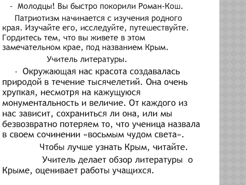 - Молодцы! Вы быстро покорили Роман-Кош.