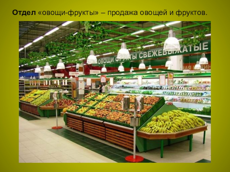 Отдел «овощи-фрукты» – продажа овощей и фруктов.