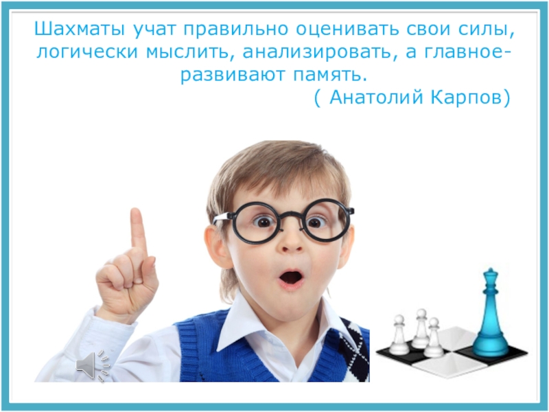 Слайд 10 Шахматы учат правильно оценивать свои силы, логически мыслить, анализировать, а главное-