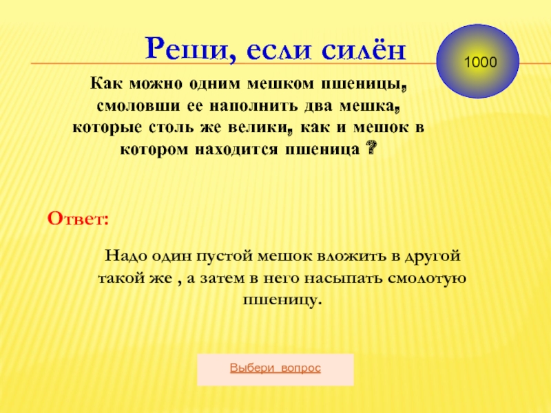 Как можно одним мешком пшеницы, смоловши ее наполнить два мешка,