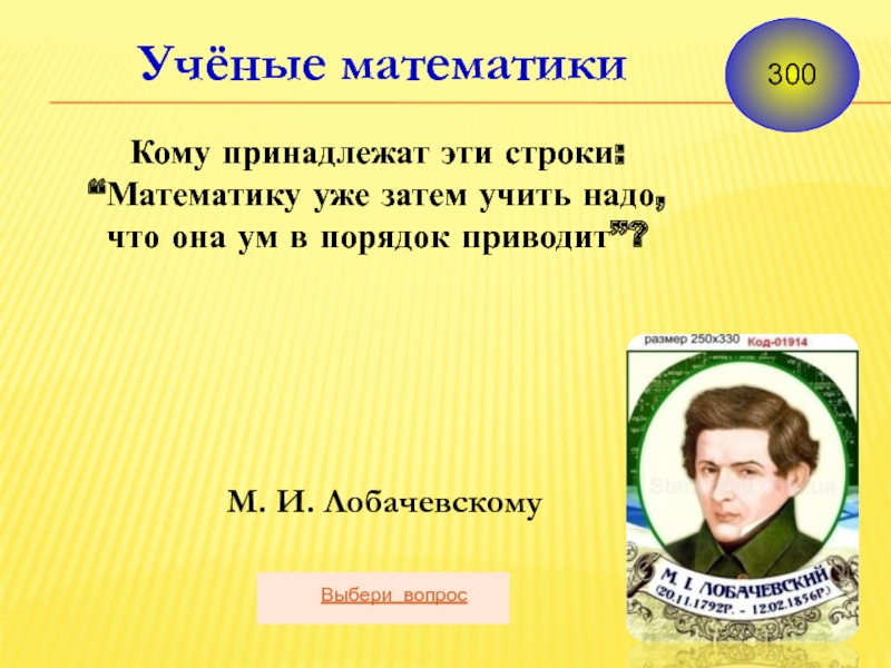 М. И. Лобачевскому