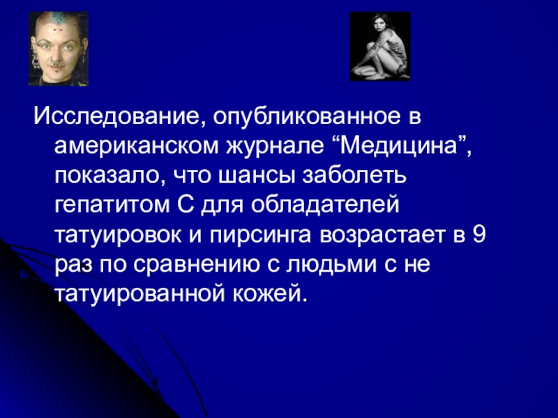 С для обладателей татуировок и пирсинга возрастает в 9 раз по сравнению с людьми с не татуированной кожей.