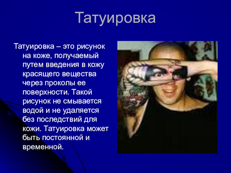 Татуировка – это рисунок на коже, получаемый путем введения в кожу