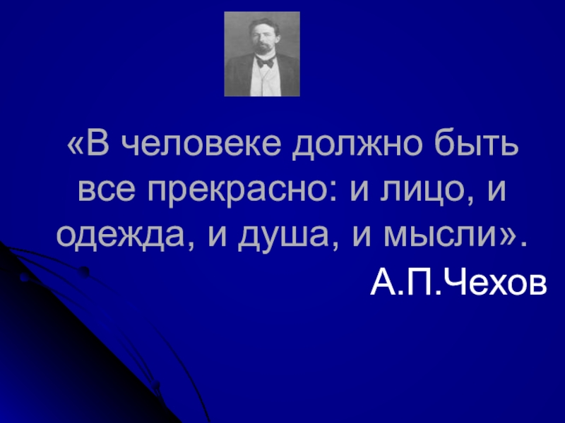 Слайд 2«В человеке должно быть все прекрасно: и лицо, и одежда, и