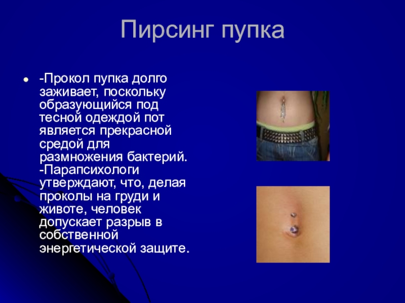 -Прокол пупка долго заживает, поскольку образующийся под тесной одеждой пот