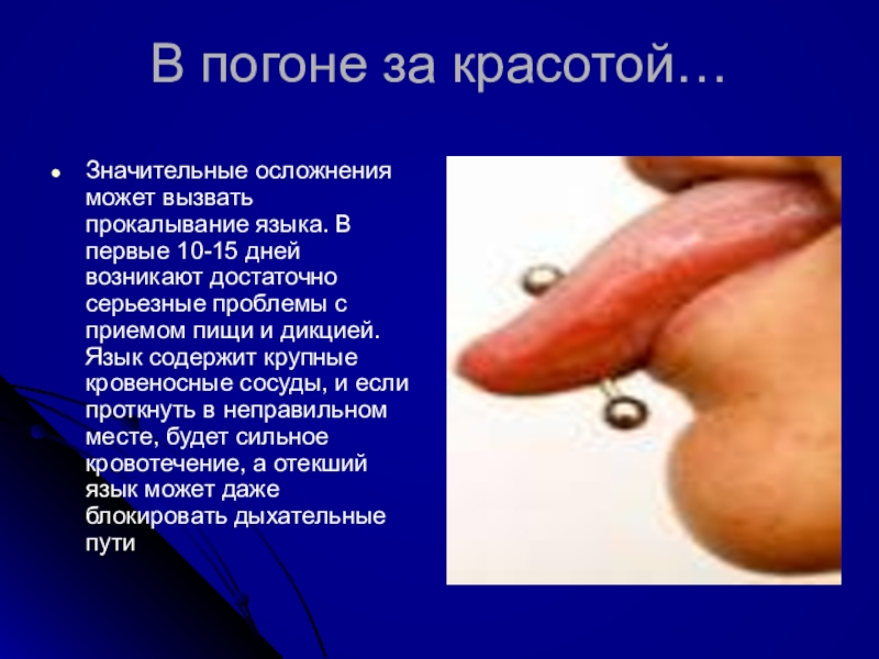 Значительные осложнения может вызвать прокалывание языка. В первые