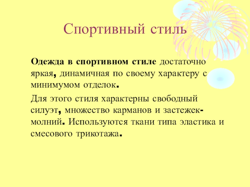 Одежда в спортивном стиле достаточно яркая, динамичная по