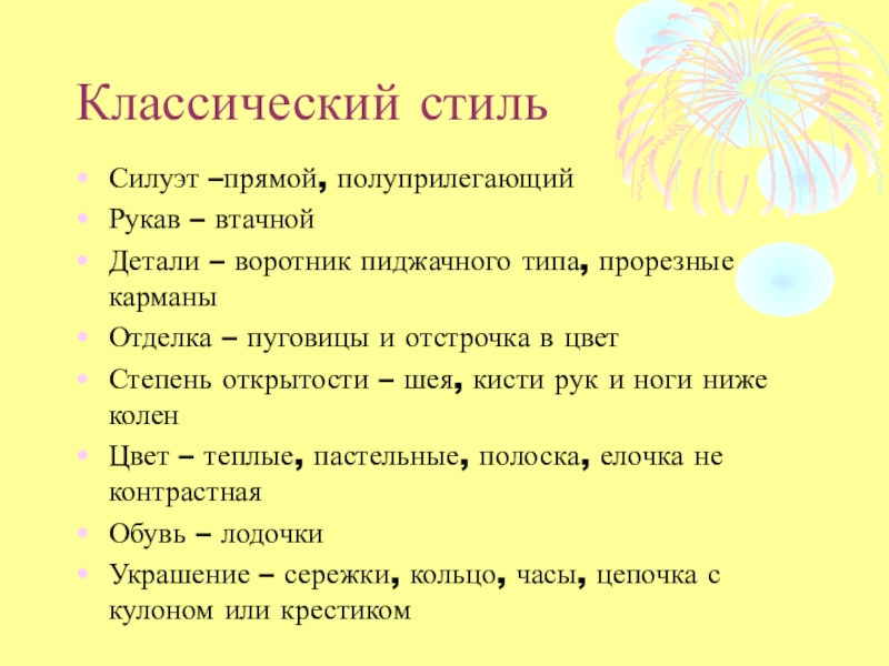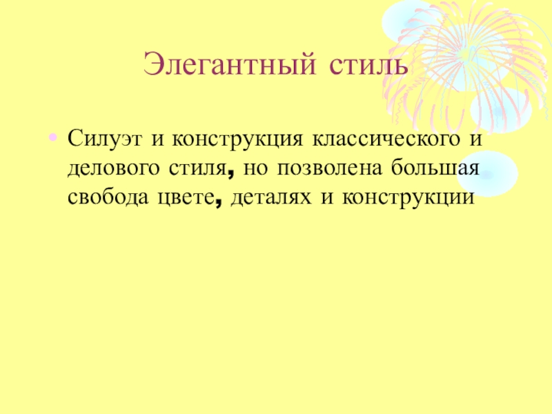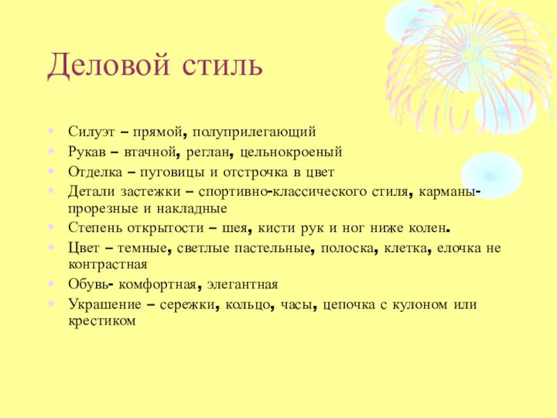 Силуэт и конструкция классического и делового стиля, но позволена большая