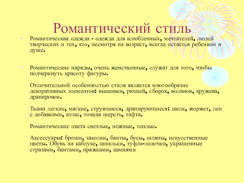 Романтическая одежда - одежда для влюбленных, мечтателей, людей творческих и
