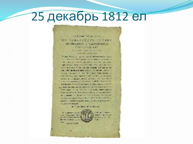 Слайд 5625 декабрь 1812 ел