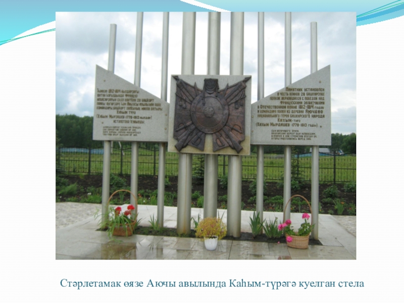 Слайд 60Стәрлетамак өязе Аючы авылында Каһым-түрәгә куелган стела