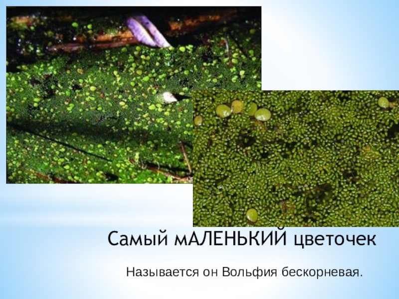 Самый мАЛЕНЬКИЙ цветочек Называется он Вольфия бескорневая.