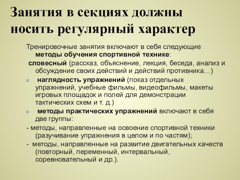 Слайд 10Занятия в секциях должны носить регулярный характер
