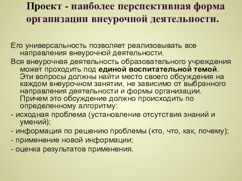 Слайд 16Проект - наиболее перспективная форма организации внеурочной деятельности.