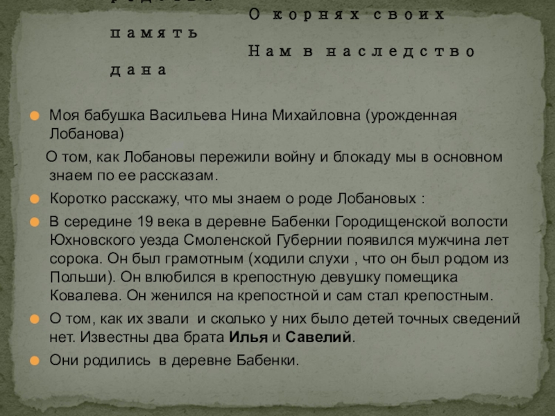 Коротко расскажу, что мы знаем о роде Лобановых :