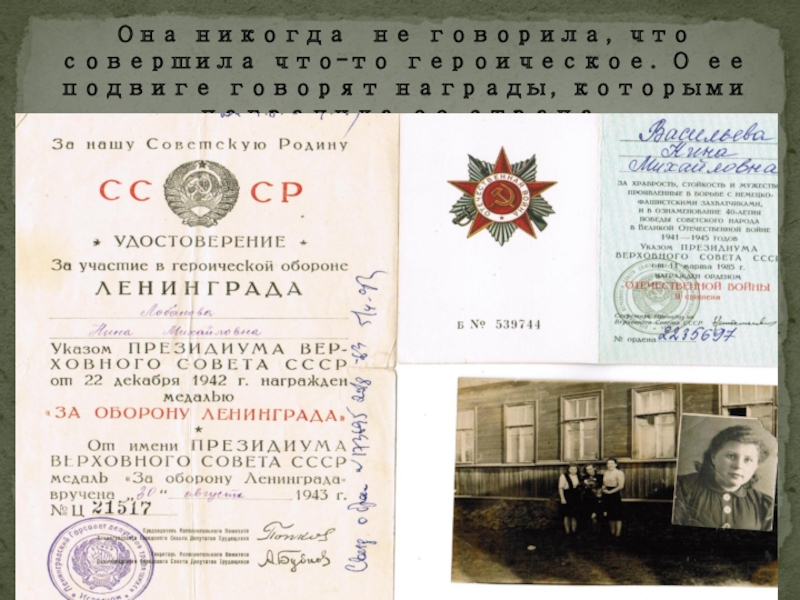 Награды , полученные бабушкой уже после войны в 1958г. И 1986г.