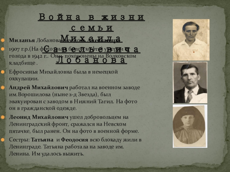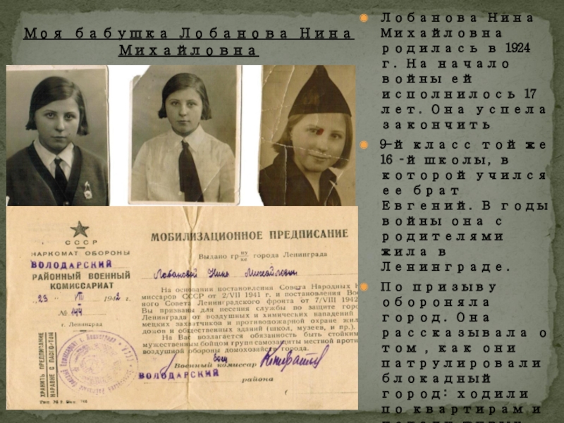 О том, как Лобановы пережили войну и блокаду мы в основном знаем по ее рассказам.