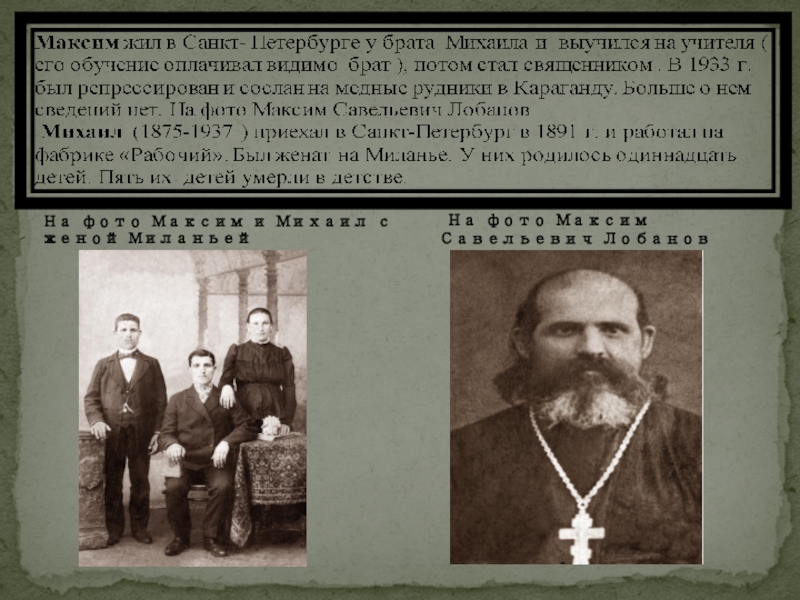 О том, как их звали и сколько у них было детей точных сведений нет. Известны два брата Илья и Савелий.