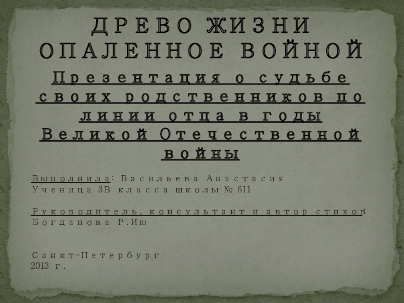 ДРЕВО ЖИЗНИ ОПАЛЕННОЕ ВОЙНОЙ