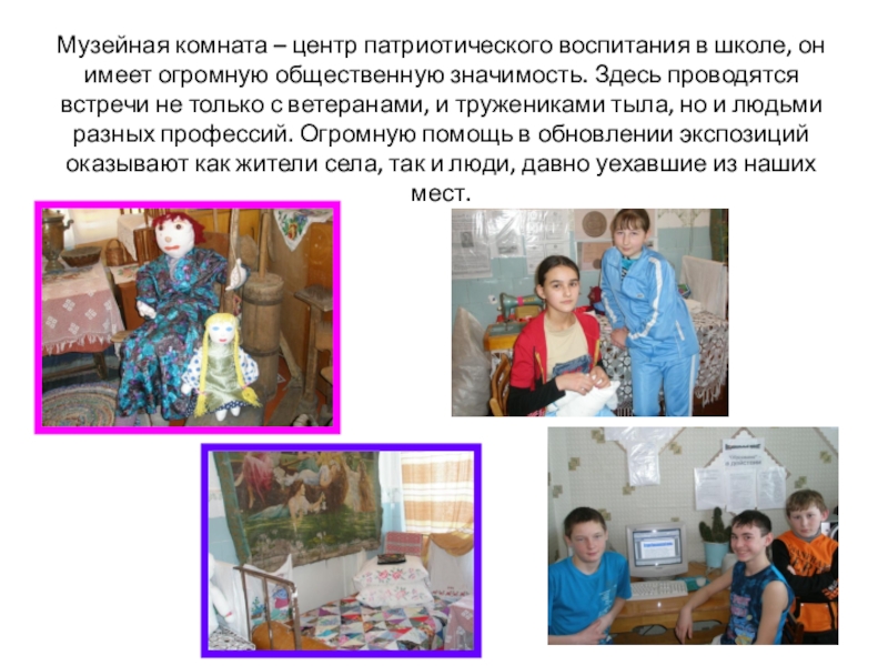 Слайд 24Музейная комната – центр патриотического воспитания в школе, он имеет огромную