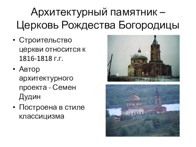 Слайд 22Архитектурный памятник – Церковь Рождества Богородицы