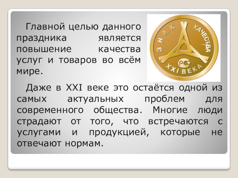 Главной целью данного праздника является повышение качества услуг и товаров во всём мире.