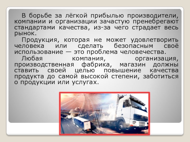 Слайд 7В борьбе за лёгкой прибылью производители, компании и организации зачастую пренебрегают