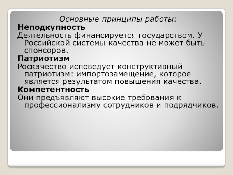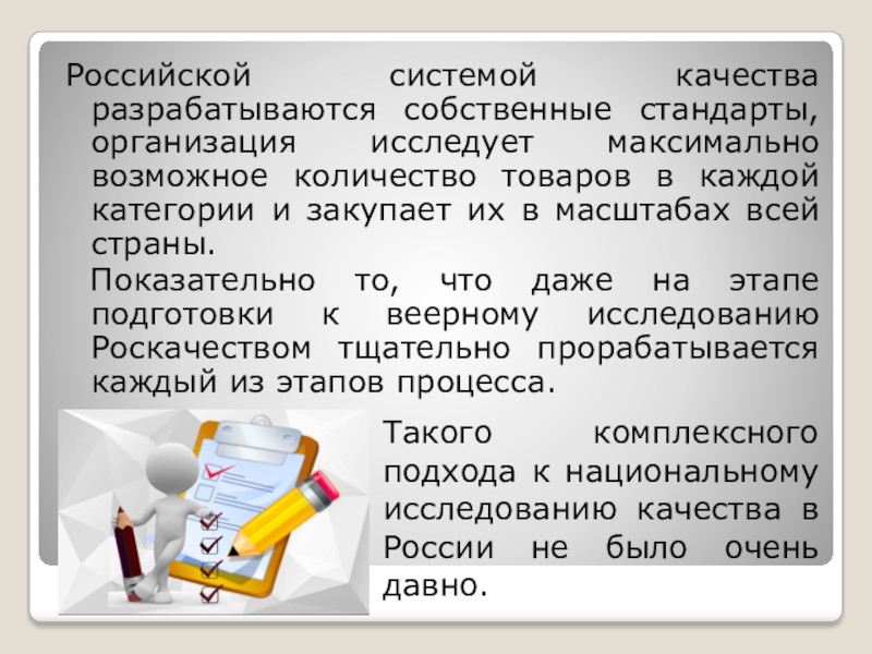 Слайд 16Российской системой качества разрабатываются собственные стандарты, организация исследует максимально возможное количество