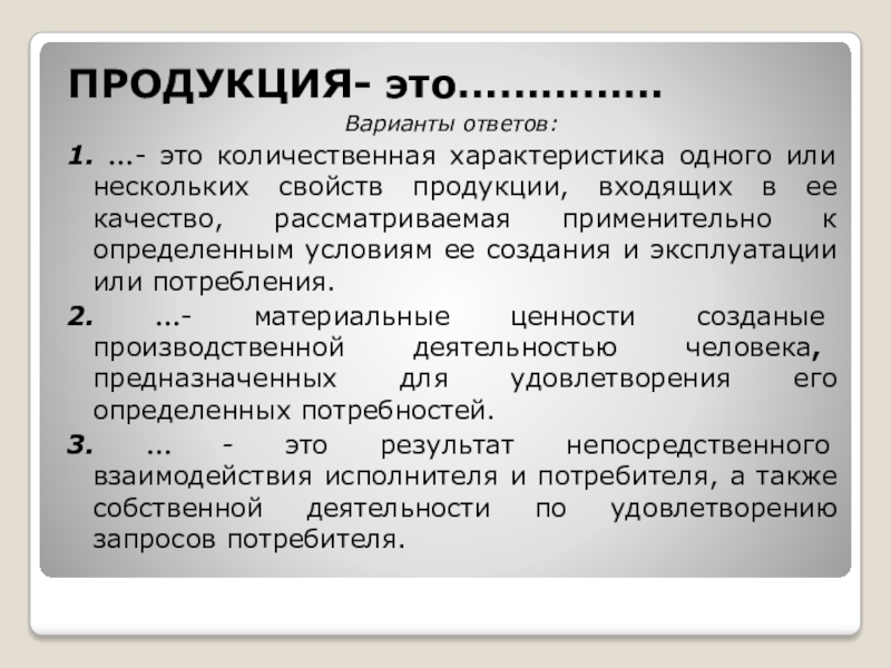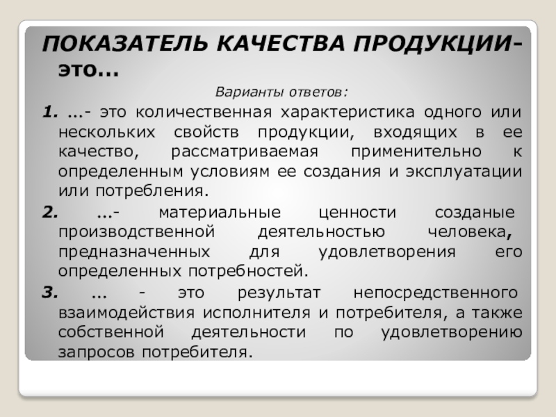 Слайд 20ПОКАЗАТЕЛЬ КАЧЕСТВА ПРОДУКЦИИ- это…