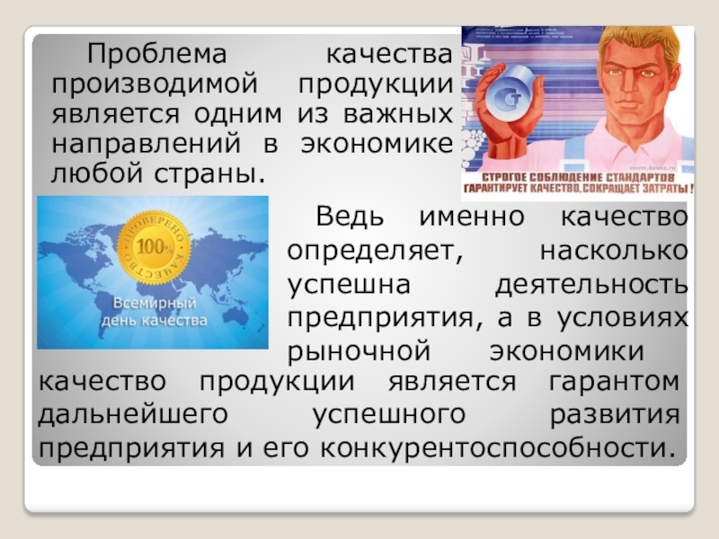 Слайд 2Проблема качества производимой продукции является одним из важных направлений в экономике