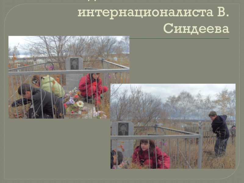 Слайд 4Уход за могилой воина –интернационалиста В.Синдеева