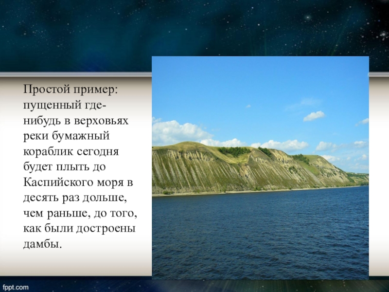 Простой пример: пущенный где-нибудь в верховьях реки бумажный кораблик сегодня будет