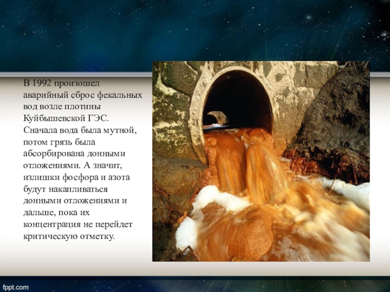В 1992 произошел аварийный сброс фекальных вод возле плотины Куйбышевской ГЭС.