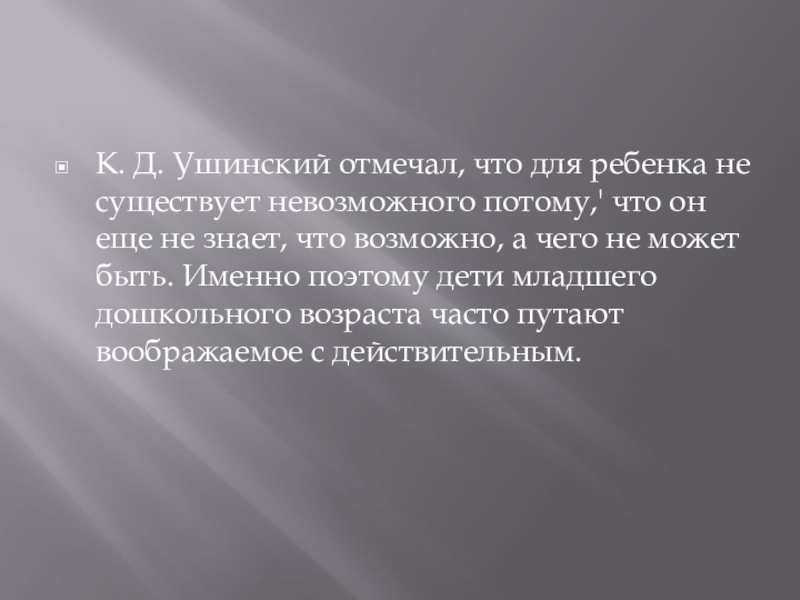 Слайд 4К. Д. Ушинский отмечал, что для ребенка не существует невозможного потому,'