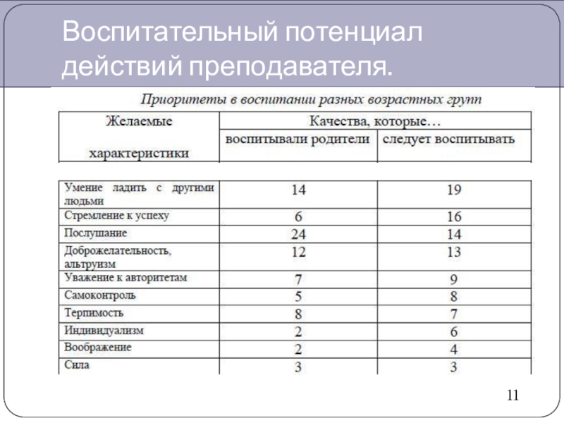 Воспитательный потенциал действий преподавателя.11