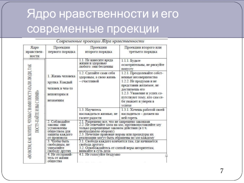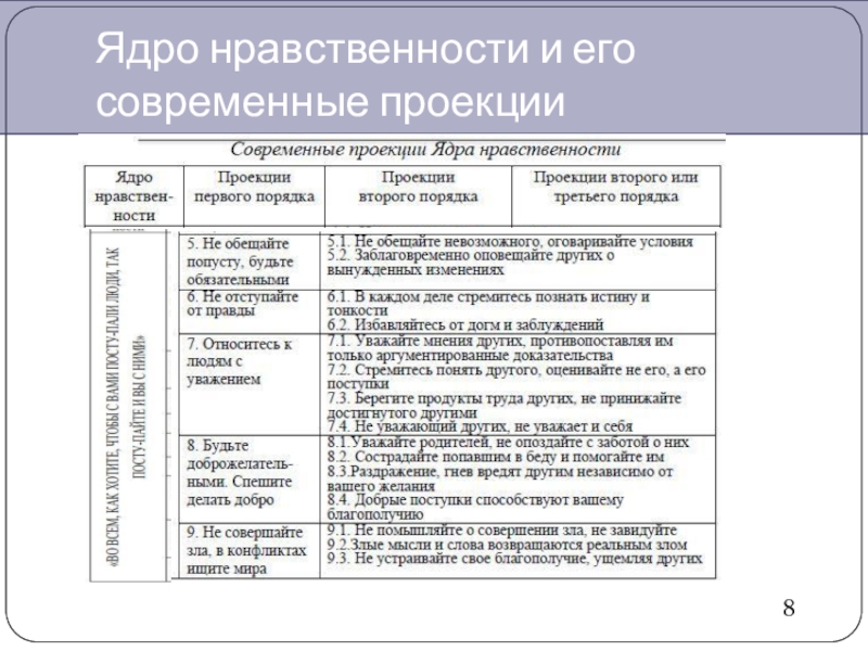 Слайд 10Ядро нравственности и его современные проекции