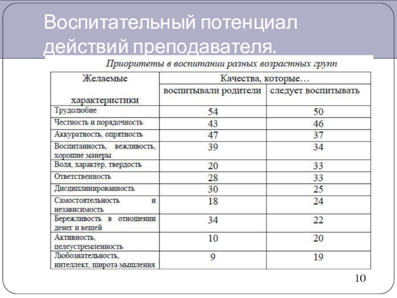 Воспитательный потенциал действий преподавателя.10