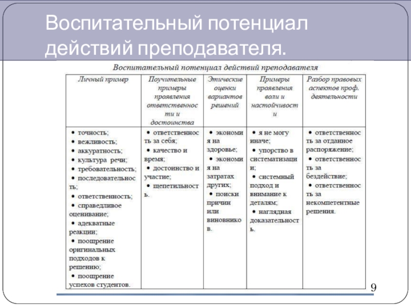 Воспитательный потенциал действий преподавателя.9
