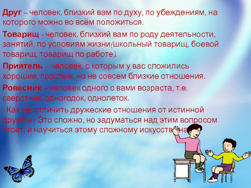 Друг – человек, близкий вам по духу, по убеждениям, на которого