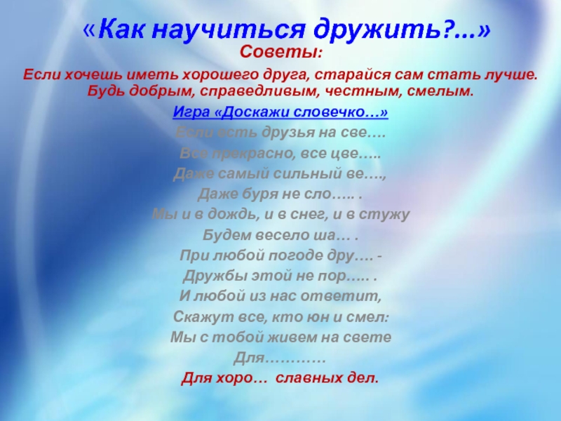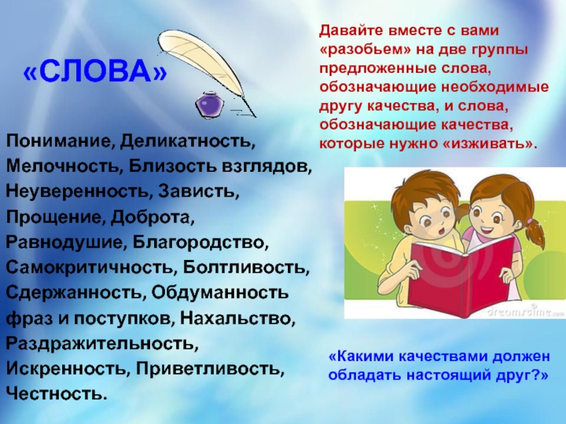 Итак , какими качествами должен обладать человек, умеющий дружить?