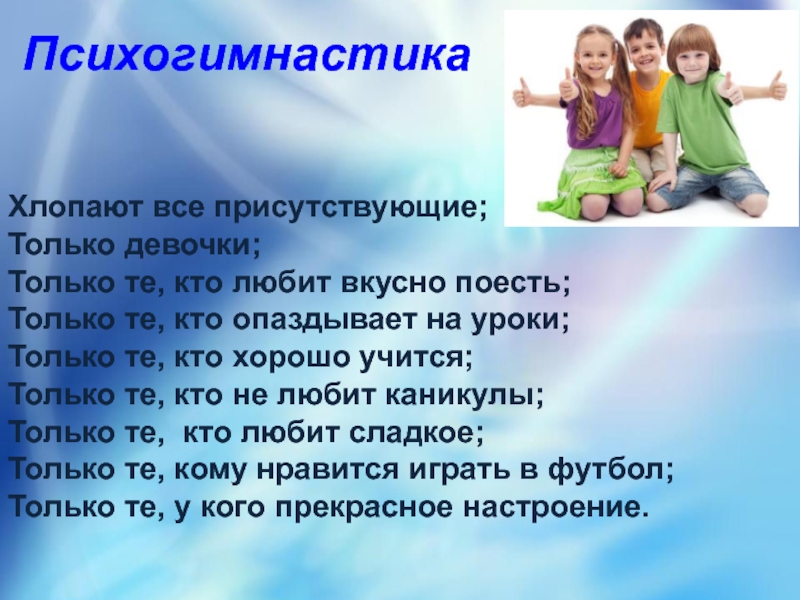 Ребята, давайте сейчас посмотрим друг другу в глаза, улыбнемся и скажем: