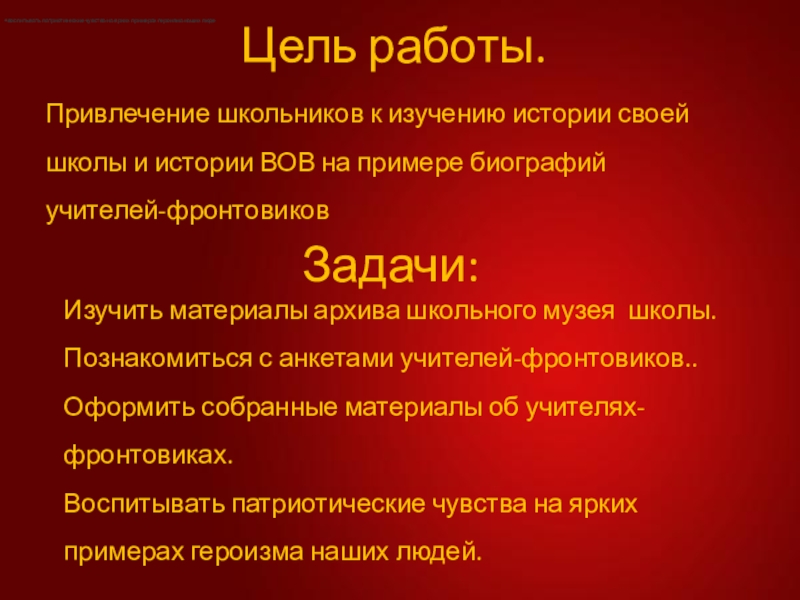Воспитывать патриотические чувства на ярких примерах героизма наших людей.