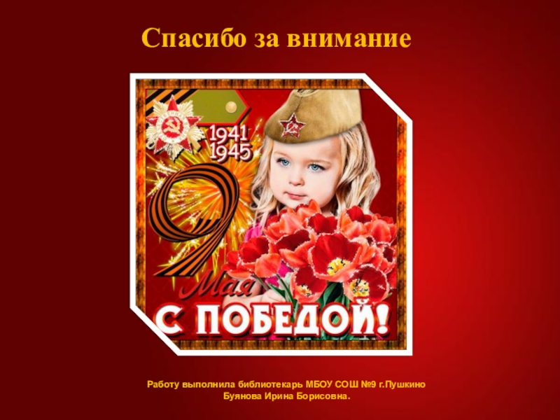 Работу выполнила библиотекарь МБОУ СОШ №9 г.Пушкино