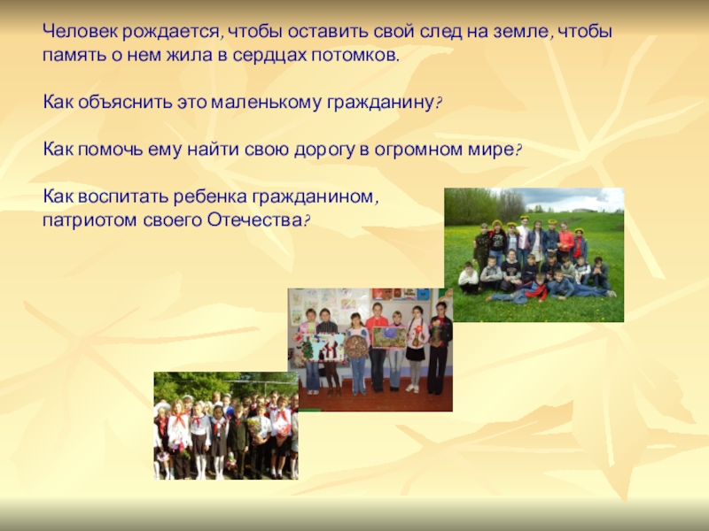 Человек рождается, чтобы оставить свой след на земле, чтобы память о