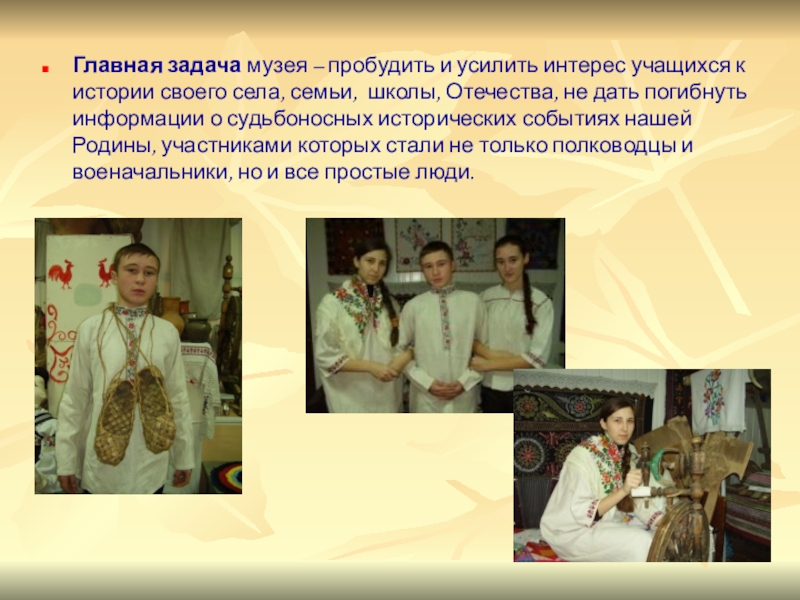 Главная задача музея – пробудить и усилить интерес учащихся к истории