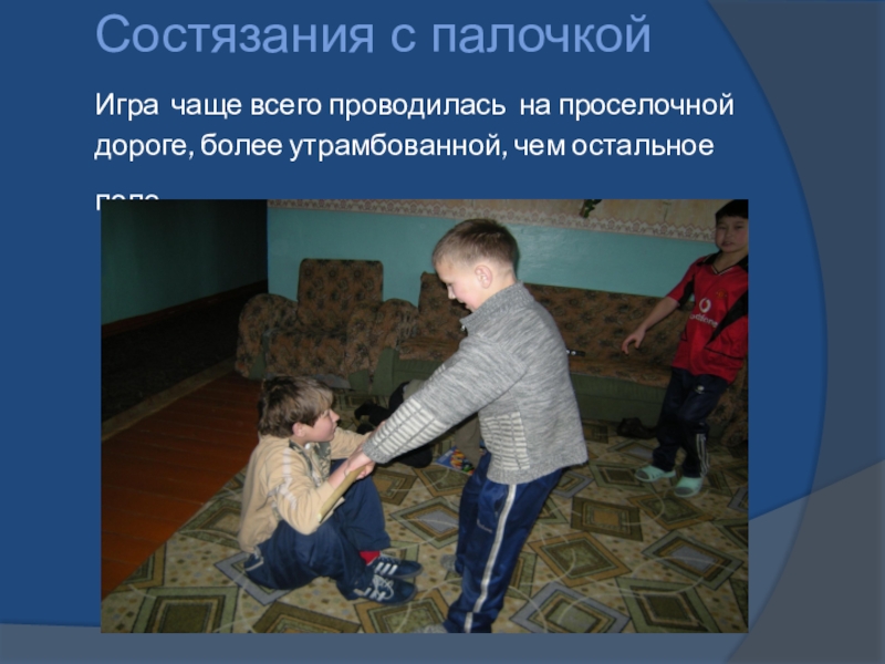 Слайд 15 Состязания с палочкой Игра чаще всего проводилась на проселочной дороге, более утрамбованной,