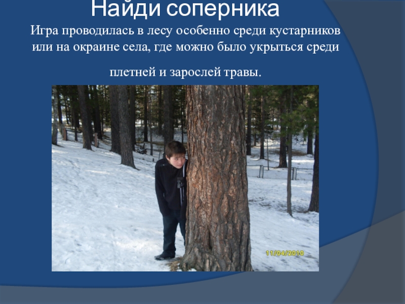 Найди соперника  Игра проводилась в лесу особенно среди кустарников или на окраине села, где можно было