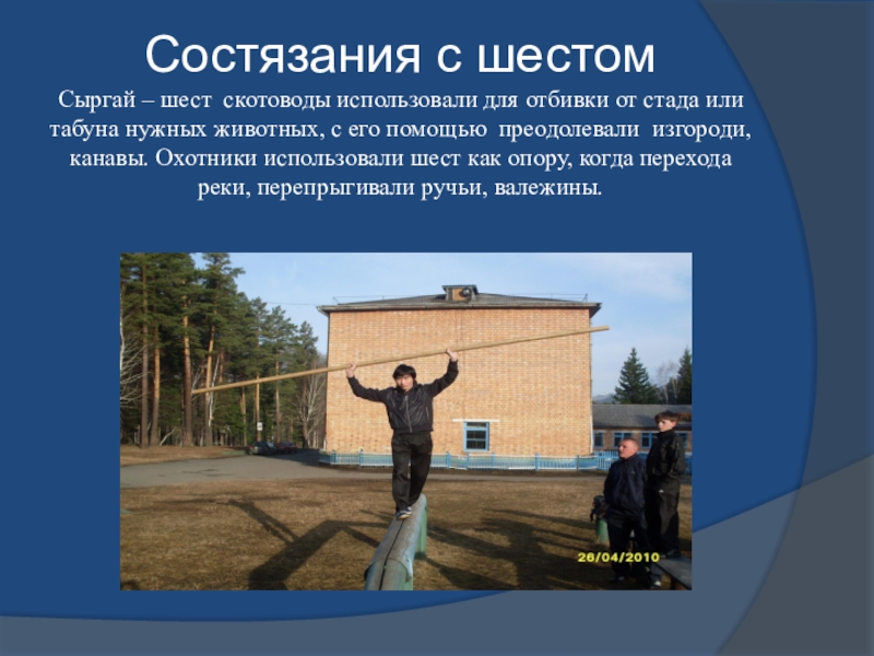 Слайд 16 Состязания с шестом Сыргай – шест скотоводы использовали для отбивки от стада
