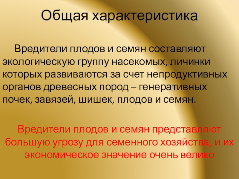 Вредители плодов и семян представляют большую угрозу для семенного хозяйства, и их экономическое значение очень велико
