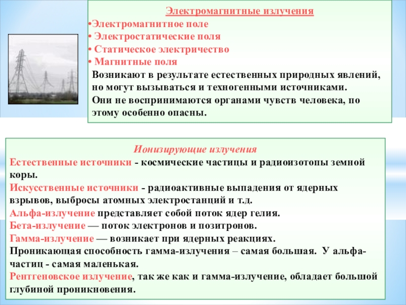 Искусственные источники - радиоактивные выпадения от ядерных взрывов, выбросы атомных электростанций и т.д.